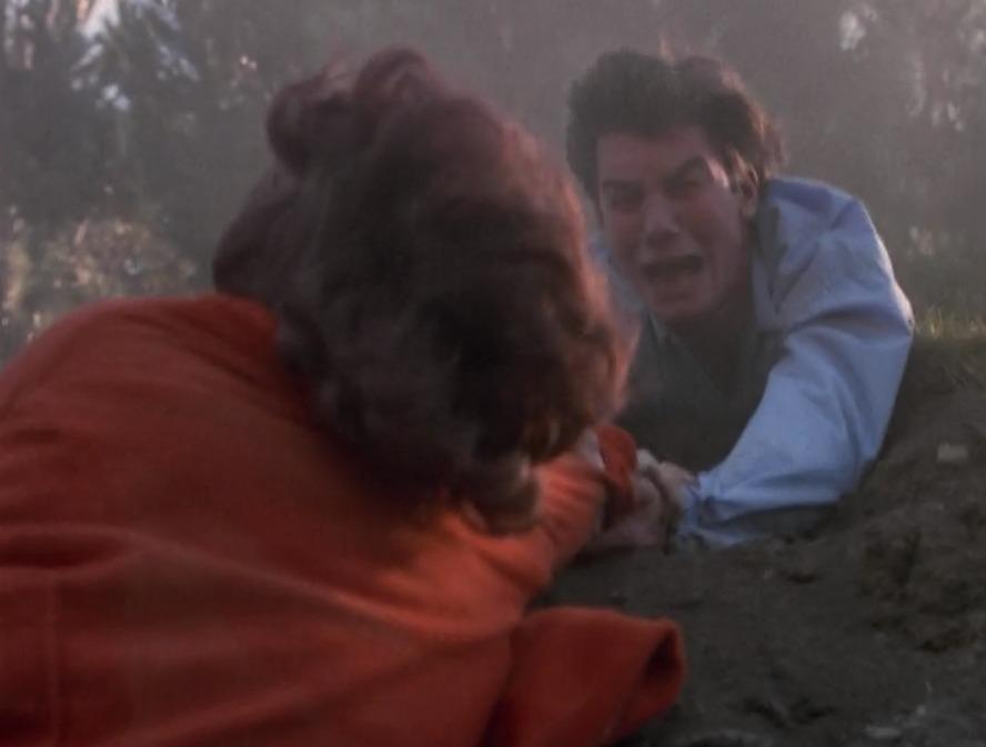 That’s the real problem with the episode. It’s not that it’s not good, or has nothing happening. It’s that there’s a lot happening and none of it is expounded upon. The sliders don’t even react to the fact that the nerds above ground hunt the undergrounders for food. Not like, to take the food they’re carrying. To eat them. And then Wade finds the undergrounders feeding on a fallen overgrounder (these are terms I made up, which sound “cool,” so I’m sticking with them). So there’s a weird circle of cannibalism that actually touches on a weird relationship between the two societies. Never touched upon in dialogue. And what about the bizarre terramorphic body horror the Professor goes through? That’s hideous, that’s terrifying. His arm is growing spines! And why? I don’t know, because he’s sick. But the dude was ripping his flesh off with his own hands. It’s some horrifying stuff that gets completely ignored by the episode. Rembrandt’s like “no biggie, dude, but I can punch you if you want.”