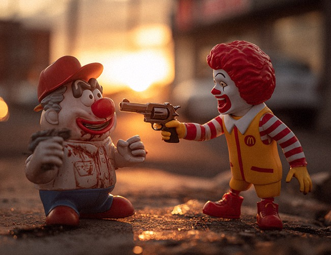 Price wars have been taken to another level on a world where fast food restaurants like Flannigan’s and Burger Monarch will do anything — including gunfire — to beat the competition.