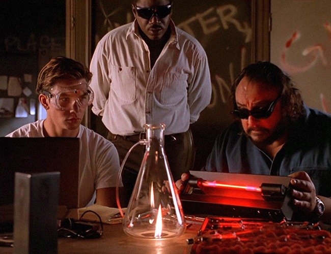 All of this culminates in the most absurd climax I've ever seen. I'm well aware that Sliders production is now in Burbank, most notably on the Universal Studios backlot. I've seen New York Street and the same tired props enough. But using the "Backdraft" attraction from Universal Studios as some epic, fire-riddled time bomb? The entire illusion is dispelled the minute you see the wide-angle shot of the room. Each time a barrel of "oil" ignites on top instead of exploding, the credibility of the act sinks lower and lower. By the time Wade and Rembrandt are rescued by Quinn and Arturo, you really don't care. All you really want is to stop watching.