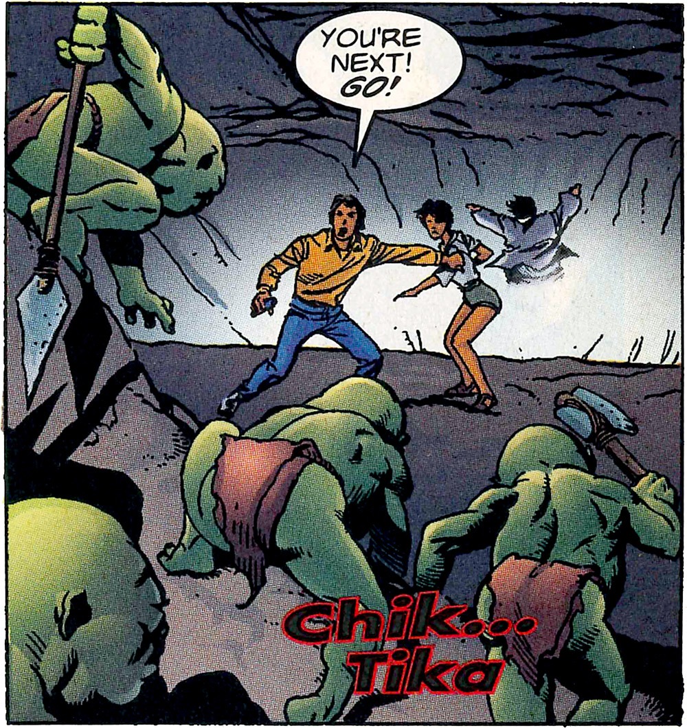 Goblins. Let’s just say these Sliders comics have the hands-down weirdest bookender worlds, like, ever. What are these Goblins? What is the evolutionary purpose of Goblins? I don’t know, I don’t care, Quinn says “Smell You Later” to them. Okay fine. They slide, no biggie.