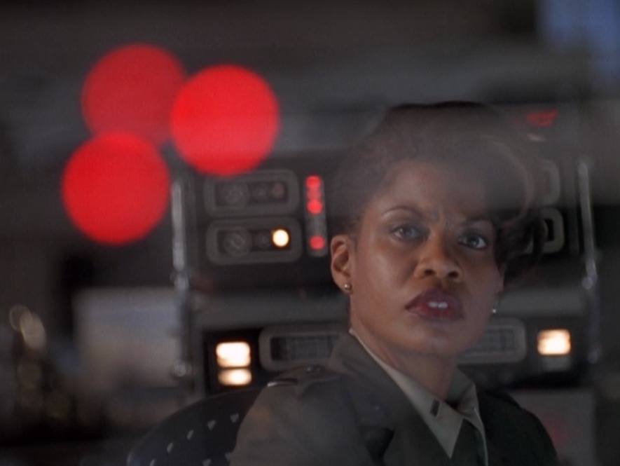 So who is Captain Maggie Beckett? Surprisingly, we’re given huge swaths of knowledge about who she is. She’s a General’s Daughter, a former fighter pilot. There’s always been weight on her shoulders, pressure from all sides. Her husband, Scientist Doctor Jensen, was crippled in a skiing accident, “forcing” Maggie to ground herself. I put “forced” in quotes because while choosing to spend more time with her husband is exactly the right decision, it wasn’t exactly up to her, and it’s pretty clear it wasn’t her first choice. There aren’t just cracks in his marriage: it’s barely a marriage. Maggie kind of clearly doesn’t like her husband at all. It’s the General’s Daughter in her seeing weakness, and trying to fight it. But she can’t help but kind of detest her crippled husband, and his connection to her spreads the weakness all over her.