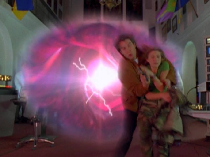 Even if said punches involve sliding within a slide with an irritating Ex-Fighter Pilot who clearly wants to fuck you even though she’s married to a crippled scientist. A huge chunk (actually maybe it only seems huge because it’s dull) of the episode is devoted to Quinn & Maggie ‘scouting’ new worlds for the Exodus. It’s an interesting idea. It’s kind of just shrugged off. But this is the first time since El Sid we’ve taken someone through the Vortex and actually dealt with the consequences. It’s also the first time since Invasion that we’ve slid through a vortex not our own.