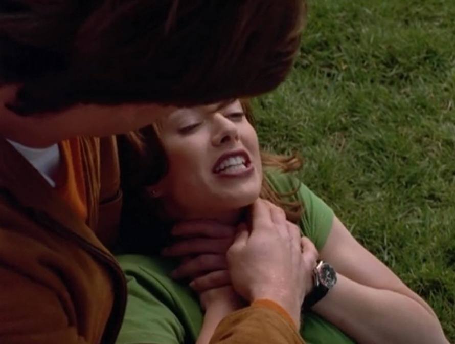 Yeah sure fine whatever. Thankfully we have Maggie meet a double of Maggie, who, ha ha ha, is actually exactly the same as Maggie-Prime. So we get the ridiculous scene where Maggie tells Quinn basically how to get her naked in order to get the timer back.
