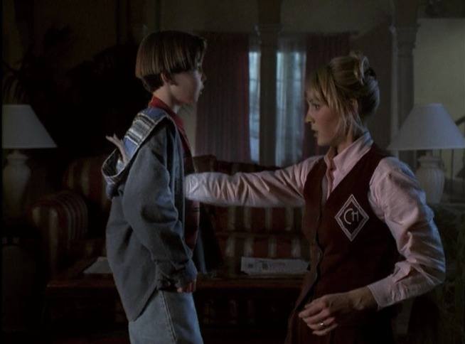And so for the episode to pull the rug out and say “actually it’s ghost-sliding” is amazing. It’s the only decision this episode could have made that wouldn’t have fallen absolutely flat. Because it then ties Holly’s conflict sufficiently with the Sliders. It connects everyone in a way that before was only tangentially earned. Plus, it’s an example of “opening up the world of sliding” that I’ve always been a fan of. It’s also something that the show hasn’t really done, Slidewaves notwithstanding since, well “Gillian of the Spirits,” which is also a clear antecedent to this episode. Also helping (just like in “Gillian”) is the fact that the guest stars this week are really good. Holly steals every scene she’s in. John Smith might be 90s-dated in appearance, but he serves his duty well as an adequate, if rote, adversary to the main action. Even the little kid—he comes off as precocious, but I’d argue that he’s supposed to. After all, when he gets Colin into his Ghost-Vortex, he’s super stoked that someone will ‘play with him’ now. He’s a kid. That’s what kids do.