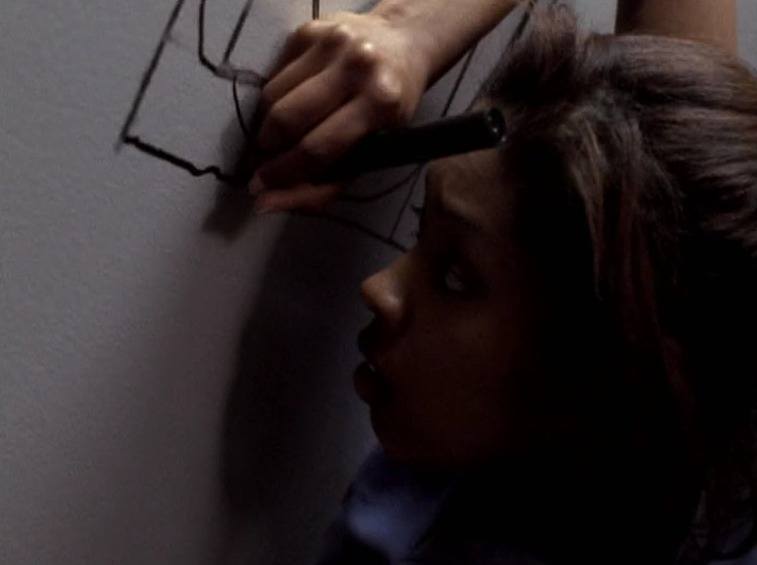 What does that mean? I don’t know. Apparently it means “you draw a bunch of maps of Illuminati glyphs on the wall.” That’s what happens to people who get erroneously remapped. Or at least I think it is—that’s what happens to Diana. Her brain goes haywire because this world’s left/right brains are reversed.