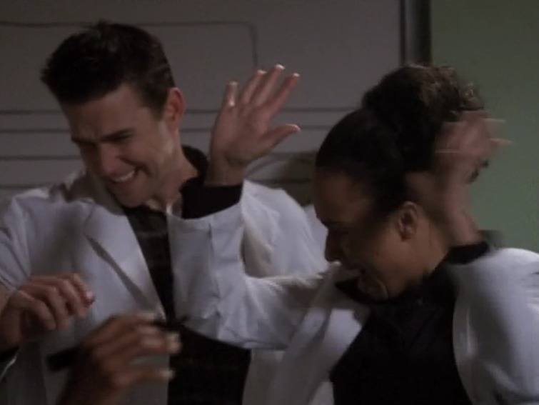 There really comes a time when the argument of “This Isn’t Sliders” just doesn’t hold water anymore. Of course this is Sliders. This is what Sliders is. A bunch of assholes thinking they’re better than everyone else. What captivating characters we have. Instead we have to watch Tembi Locke try her best to look “slow,” which starts as offensive, ends up being funny, and slides right back in to being offensive again. It’s bad. It’s a bad performance. It’s a blind performance. It’s hard to watch. Everything here is hard to watch.