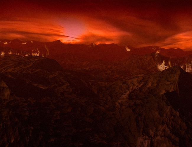 On Inferno, this ELE never collided with earth. The result? Super-hot surface temperatures, a perpetual fire, a runaway greenhouse effect and stronger gravitational forces since the moon’s mass is still a part of the planet.